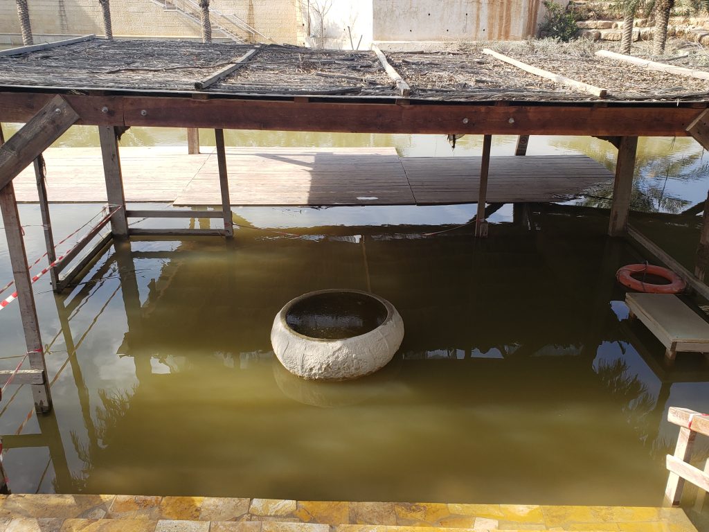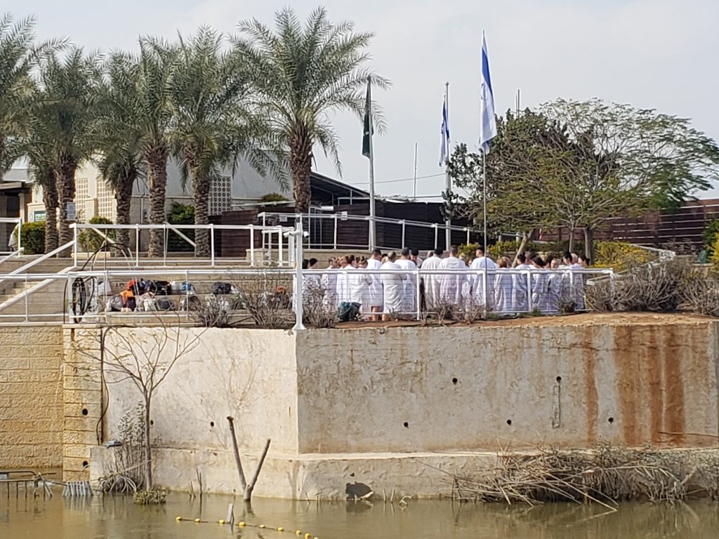 We walked to the river which is about 30 feet wide were on the other side we were able to see the spot in Israel where people were getting baptized on the other side of the river.